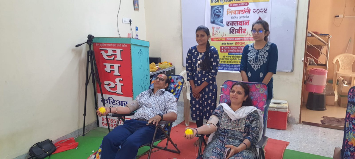 Society organized the environment Camp at Shivam Clases at Shivshakti Building, Basmat Road, Nagar, Parbhani Tq. Dist. Parbhani 19 Februrey 2024. The program chief guest was Mr. Pankaj Khedkar Chief of New Life Line Blood Bank. He speech on Importance of Blood because blood cannot create in Laboratory so it no alternative expect from human blood donation. It is very precious to save any live. Dr. Narwade awake collected people regarding its not harmful to anybody from blood donation. After guidance society’s near about 15 voluntary give blood donation.